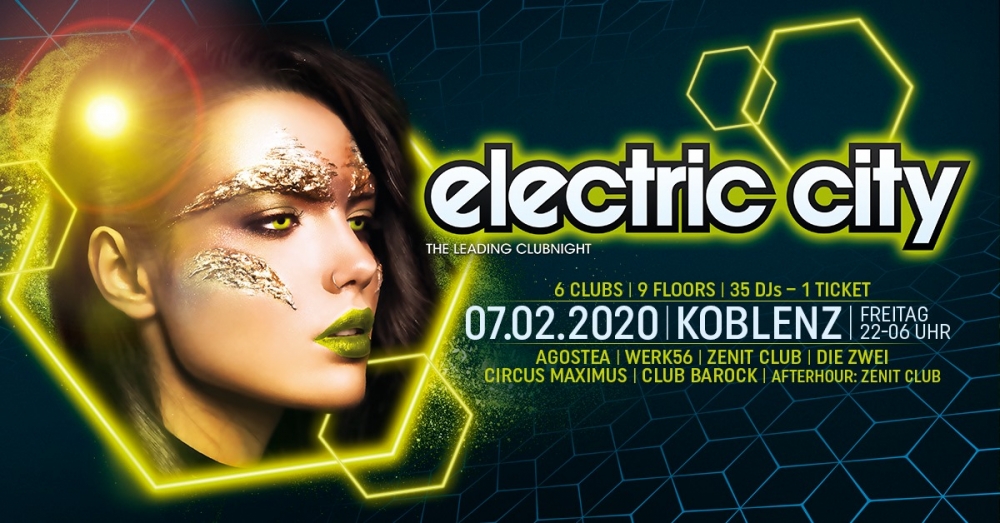 Am 07.02. hat Dein Körper 100% Akku, denn die ganze Stadt ist elektrisch. 6 Clubs, 9 Floors, 35 Acts – ein Ticket! Das ist electric city. Lass Dich treiben! Von Club zu Club, von Floor zu Floor, von einem DJ zum nächsten. Fühle die intime Atmosphäre auf der Tanzfläche. Bass Modulators, Harris & Ford, D-Fence, Die Gebrüder Brett oder DJ Quicksilver – alle direkt vor Dir und nicht auf Deinem Smartphone. Connected durch die Liebe zur Musik. Nicht durch WLAN und Glasfaserkabel.