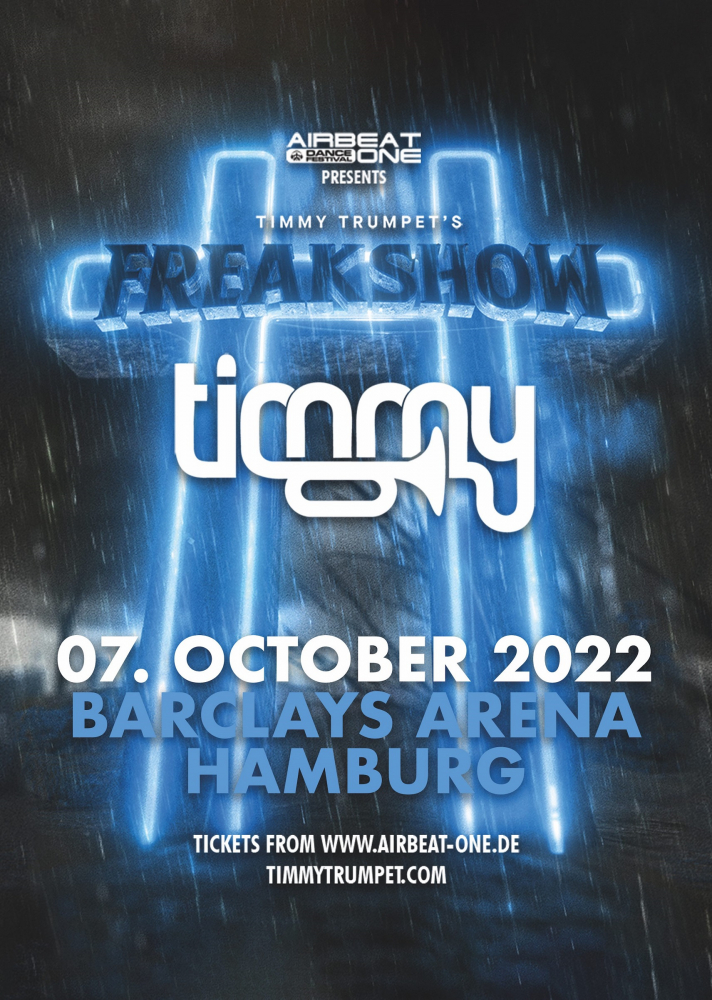 Jetzt freut sich der australische Superstar auf seine zweite Headline-Show in Deutschland. 2018 riss er die Kongress- und Sporthalle in Schwerin ab. 2022 stürmt er eine der größten Arena in Deutschland. Präsentiert vom AIRBEAT ONE Festival wird Timmy Trumpet am 07. Oktober 2022 die Barclays Arena in Hamburg mit seiner FREAK SHOW und einem wahren EDM-Spektakel abreißen.