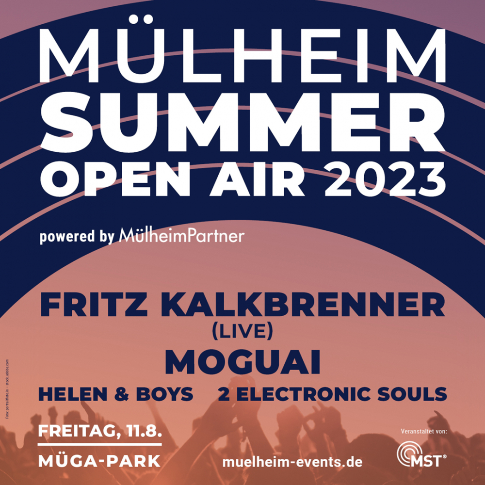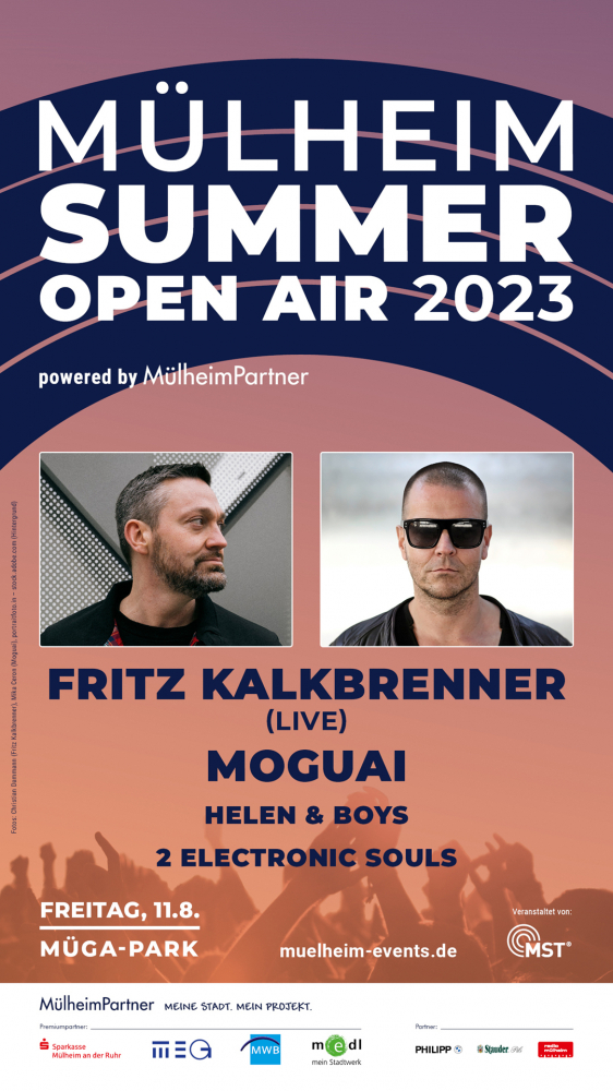 Ein umfangreiches DJ-Line-Up verwandelt den MüGa-Park mitten im Herzen von Mülheim in ein Festivalgelände. Einer der DJs, der an den Turntables aktiv ist, ist der bekannte DJ und Produzent Moguai. Seine aus dem Radio bekannten Sets wird er live am Freitag, 11. August beim Mülheim Summer Open Air 2023 auflegen. Mit Helen & Boys und den 2 Electronic Souls legen weitere Top-DJs der Szene auf.