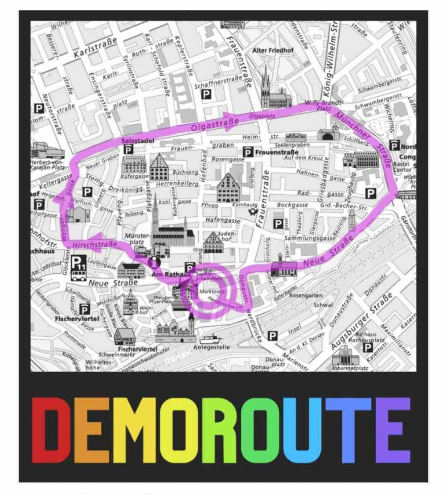 Was: Redebeiträge, Infostände, Demozug (Route im Bild oben)