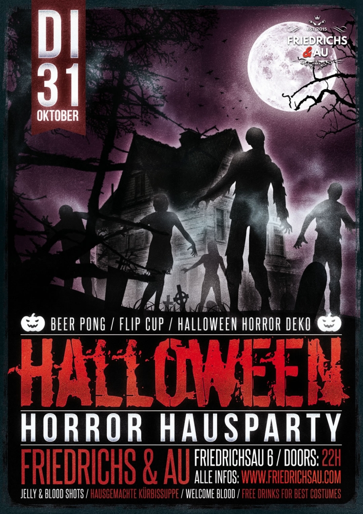 Natürlich sind alle so willkommen, wie sie gern feiern möchten, mit Kostüm gibts aber am Eingang schonmal einen ersten Blood Shot umsonst! Freut Euch auf Blood & Jelly Shots, viele zu Halloween angepasste Getränke, einer gruseligen Halloween Deko, Halloween Visuals, die das gesamte Friedrichs & Au in eine schauerige Halloween Atmospähre tauchen und die wohl gruseligste Studentenparty zu Halloween!