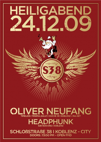 Neben dem ?Marathon-Mann? Olli Neufang ist auch einer der aufregendsten Newcomer der regionalen Szene wieder im S38 zu Gast: Headphunk. Der Evolution Of Sound-DJ wird wie Olli Neufang die Brücke zwischen Techno, Minimal und House am Heiligabend schlagen.