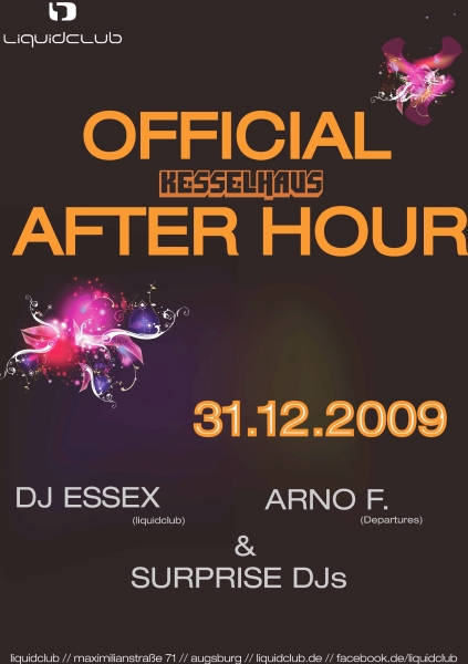 Wer an Neujahr von der Sylvesterparty noch nicht genug hat und das neue Jahr anständig begrüßen möchte, ist bei der offiziellen Kesselhaus After Hour genau richtig! Nach Lützenkirchen, Tomcraft und der Departures Crew im Kesselhaus erwartet Euch im liquidclub eine treibende Mischung aus Electro, House, Minimal, Tech-House und Electronic Classics. Essex, Arno F und Überraschungsgäste feiern mit Euch das neue Jahr ? laut, mitreißend und elektronisch!