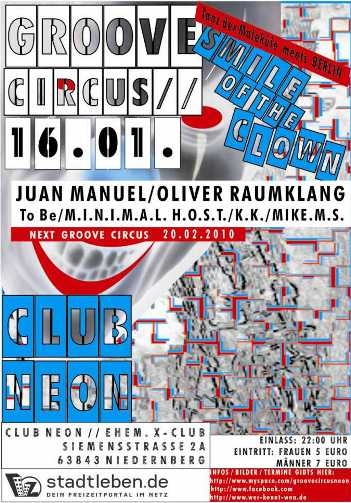 16.01.2010 Groove Circus // Tanz der Moleküle meets BERLIN ?Smile of the Clown? (Neon Niedernberg)