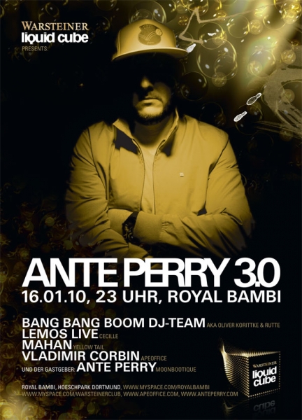 Der Dortmunder Workaholic und self-made Diskobär Ante Perry ist zwar umtriebiger denn je mit seinen zahlreichen Projekten, zudem world wide nicht nur im Web, sondern vor allem auch als DJ unterwegs und bedient sich bei seinem Businessplan ausgeklügelter und fortschrittlicher Vermarktungsmechanismen. Ante Perry 3.0 bedeutet jedoch keine neue Generation Ante Perry, obwohl er sich sicherlich auch mal mit den Kollegen von Google, Apple, Microsoft, Facebook und Myspace an einen Tisch setzen würde... wenn das Ergebnis rockt!