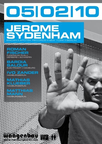 Zum Auftakt 2010 stellt hamburgBerlin, mit großer Freude, den gebürtigen New Yorker, Produzenten, Labelbetreiber und DJ Jerome Sydenham im Waagenbau vor. Jerome ist momentan einer der begehrtesten DJs der House- und Technoszene, was z.B. auch seine regelmäßigen Auftritte im Berliner Berghain zum Ausdruck bringen.