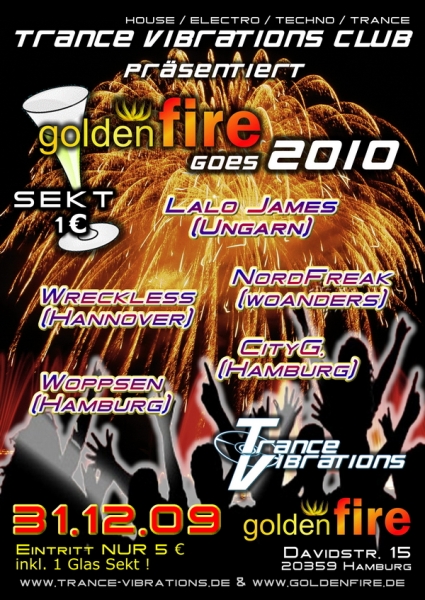 Melodisch, harmonisch und treibend feiern Trance Vibrations Club und GoldenFire zusammen ins neue Jahr.