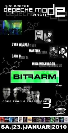 The modern DEPECHE MODE night ? more than a party Part 3 ?Genau ein Jahr ist es her, da präsentierte das Edelfettwerk eine neue Form von einerDepeche Mode Nacht! Auf der ?the modern Depeche Mode night? verschmelzen Depeche Mode Fans, Synthiepopliebhaber und die Anhänger der elektronische Musikszene zusammen und feiern gemeinsam eine wilde modern Depeche Mode Night!Hier wechseln sich live-geremixte Originaltracks der Englischen Kultband, mit modernen aktuellenRemixen internationaler Top-Producer wie Digitalism, Timo Maas, Underworld, Booka Shade, Dirty South, Thomas Schumacher oder zum Beispiel Paul van Dyke, ab. In den Live-Sets der drei Hamburger DJs Sven Wegner aus dem Waagenbau/Fundbereau, Martink aka Mika Westbrook (TrancePort/Obsession/LoveCity), sowie dem Hamburger DJ-Urgestein DJ Gary D., fehlen natürlich auch die zahlreichen legendären Live-Versionen und original Kultremixe, nicht. Hier werden treibende Depeche Mode Tracks neu erschaffen?Ein weitere Highlight dieser Nacht wird der Auftritt der Synthiepop-Electroband BITFARM sein.Im Januar veröffentlich das Label ROUGH TRADE das erste Album ?Never Mind? von BITFARM.BITFARM, das sind drei bestens bekannte Hamburger DJs & Producer (Gary D. - Gesang & Gitarre, Sven Wegner & Martink - Keyboards & Drummachine), die Live zum ersten Mal im Edelfettwerk ein paar neue Tracks aus Ihrem Album performen werden. In dieser Nacht werden auch Videoaufnahmenfür Ihre erste Single ?Love Divine? gedreht werden und Ihr seit als Gäste live dabei? Unter: www.myspace.com/bitfarm könnt Ihr schon jetzt einige Tracks vorhören. Nach den ersten Beiden erfolgreichen ?the modern Depeche Mode night? Parties, folgt nun der dritte Teil und das verspricht alles was von Depeche Mode aus den letzten 20 Jahren tanzbar ist.Natürlich wird das Edelfettwerk in dieser Nacht ganz Depeche Mode like dekoriert und Depeche-Videos auf insgesamt 7! Projektionswänden, sowie die spektakuläre LED-Matrix Lichtanlage, runden das Programm optisch ab. Alle Informationen über die ?the modern Depeche Mode night? , findest Du unter www.clubfood.de . Datum: SAMSTAG, 23.JANUAR 2010Ort: EDELFETTWERKEinlass: 23:00 UhrEintritt: 7 EuroInfo: www.clubfood.de www.edelfettwerk.deSound: alles von Depeche Mode / aktuelle Remixe