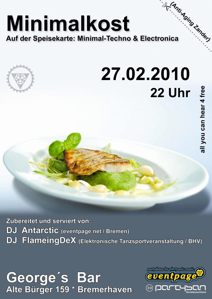 Selbstverständlich wird auch bei dieser Veranstaltung der neueste minimale Sound aus den deutschen Techno-Metropolen nicht zu kurz kommen !!! Die DJ's werden an diesem Abend einen Balanceakt zwischen Listening-Music und tanzbaren Elementen herstellen. Die Vermischungen von Minimal Techno & House sowie Dub und Electro werden dabei einen eher angenehmen, atmosphärischen und groovigen Endlos-Sound ergeben.