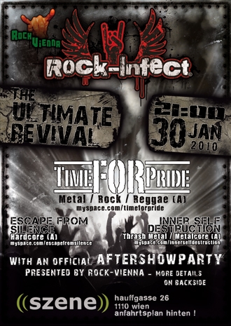 Unsere Mosh-Arena namens Szene Wien wird wie immer um 20 Uhr geöffnet - um 21 Uhr eröffnen die 3 Live Bands den MEGA Rock-Infect.