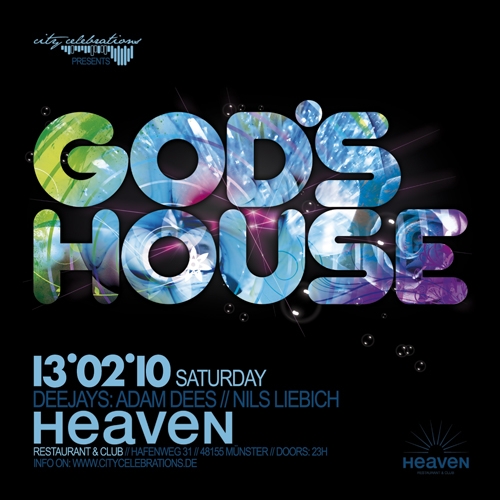 nach einem ½ Jahr GOD`S HOUSE im Heaven ist noch lange nicht Schluss und wir präsentieren Dir voller Stolz unser neues Design. Auch in Zukunft sorgt "Citycelebrations" für ein abwechslungsreiches Repertoire feinster elektronischer Sounds und avanciert das Restaurant ab 23h zu Deinem Feiertempel.