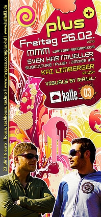 Musikalisch vereint die Musik MMMs nicht nur Einflüsse aus Minimal-Techno, House und Breakbeat, sondern auch Latin- und Jazz Elemente. In seinen DJ und Live-Sets verbindet MMM die Erfahrungen aus unzähligen Auftritten von über 2 Jahrzehnte und führt die Tradition der frühen Rave-Bewegung fort, dass musikalisch alles geht was Spaß macht solange es auf der Tanzfläche funktioniert. Unsere beiden plus+ Residents Sven Hartmüller und Kai Limberger dürfen bei dieser Session natürlich nicht fehlen und werden in gewohnter Abfahrer-Manier die Hütte zum wackeln bringen.