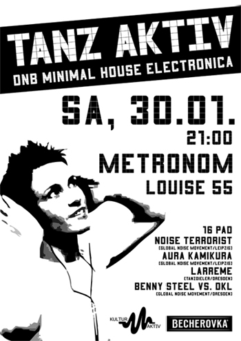 Musikalisch werden an diesem Abend die Grenzen zwischen Dubstep, Broken Beats, D'n'B und straightem 4/4-Takt verschwimmen. Dafür sorgen unter anderem unsere Gäste aus dem fernen Westsachsen. Lasst euch von eher wenig in Dresden gespielter, aber extrem tanzbarer Musik überraschen. Der 16 Pad Noise Terrorist und DJane Aura Kamikura von Global Noise Movement will make you dance!