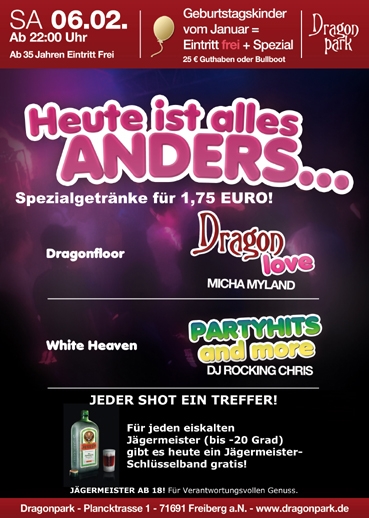 Alle Geburtstagskinder vom Januar erhalten bis 24 Uhr freien Eintritt und entweder 25 Euro Freiverzehr oder ein Bullboot mit 0,5l Wodka.