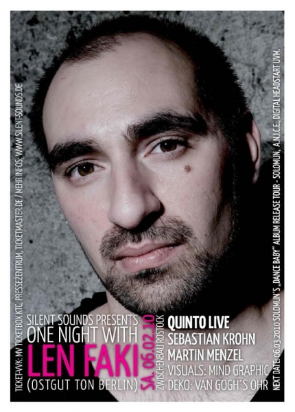 Egal in welcher Metropole er gerade ein Stell Dich ein gibt, Len Faki ist immer ein Garant für volle Tanzflächen und jubelndes Publikum. Seine Sets bestechen durch Leidenschaft und Energie. Er ist Resident DJ der ersten Stunde im Kultclub Berghain/Panorama Bar und besticht schon seit je her durch seine extralangen Sets. Als Labelchef von Podium und Figure ist es Ihm gelungen, eine Plattform für seine ganz eigene Definition von Techno zu schaffen.