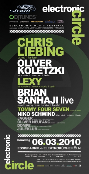Was 1991 im Giessener â??Red Brickâ?? begann, ist mittlerweile überall auf der Welt zuhause: Chris Liebing gehört mittlerweile zu den besten Techno-DJs des Globus. Erste Sternstunden waren sicherlich die Zeiten im Frankfurter â??Omenâ??, wo er bis zur SchlieÃ?ung 1998 auflegte. Auf die Umnabhängigkeit seiner Veröffentlichungen legte Liebing immer allergröÃ?ten Wert. Also gründete er u.a. das Label â??CLRâ??, das seinem internationalen Durchbruch sehr behilflich war. Was folgte, ist deutsche Elektronikgeschichte: erfolgreiche Alben, Radioshows, zahlreiche Kritiker- und Publikumspreise. Und natürlich unzählige groÃ?artige Clubnächte. Denen beim â??Electronic Circleâ?? eine weitere hinzugefügt wird!