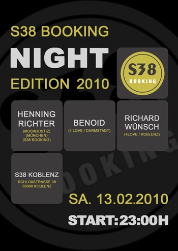 Newcomer und Talente aus dem ?eigenen Stall" präsentiert die ?S38 Booking Night" im Koblenzer Elektroclub.