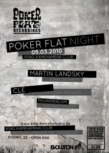 Ich bin mir ganz sicher, mit dem Line-up der POKER FLAT NIGHT kann man gar nicht verlieren, da setz ich mein letztes Hemd drauf. Wer das für einen Bluff hält, sollte sich erst einmal die Namen durchlesen, die die Nacht für uns bereit hält. Zuerst hätten wir da mit Martin Landsky ein absolutes Ass auf der Hand. Nachdem er über seine Leidenschaft für Hip Hop und Funk zur elektronischen Musik gefunden hatte, begann er bereits mit 14 Jahren mit dem Auflegen. Heute steht er wie kaum ein anderer für die wuchtige Balance zwischen House und Techno, die seinem deepen Housesound das Besondere verleiht. Aktuell wird seine Single we are streaking in den Clubs gespielt, die auch an diesem Abend sicher zu hören sein wird. Wenn das noch nicht reicht, um das Blatt der anderen zu schlagen, zaubere ich halt mit Clemens Kahlcke noch eine weitere Trumpfkarte aus dem Ärmel. Unter dem Pseudonym DJ Clé bespielt er weltweit seit über 20 Jahren die Clubs mit seinen mitreißenden Housesets. Er ist eine Hälfte der legendären Martini Brös, die wie Martin Landsky auf Steve Bugs Poker Flat Label veröffentlichen.