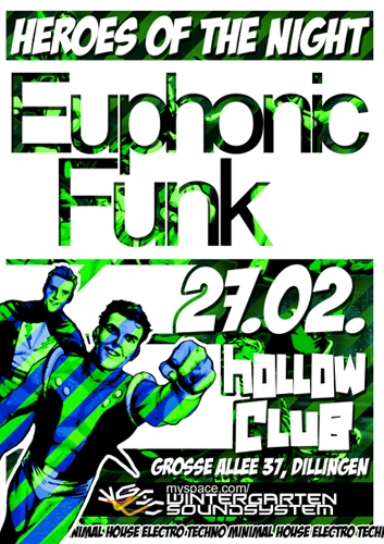 Schule, Beruf, all das hatte von nun an nur noch zweitrangige Bedeutung. Gefesselt im Bann der Clubszene wollten beide nur zwei Dinge - Musik und Tanzen! Zu diesem Zeitpunkt waren sich beide noch völlig Fremd... Monate später, wieder einmal nachts unterwegs, lernten Sie sich kennen und schätzen... Was als Freundschaft begann, durch die Ambitionen zur Musik gefestigt wurde, nennt sich heute Euphonic Funk - Die Definition für eingängige, groovende, elektronische Musik.