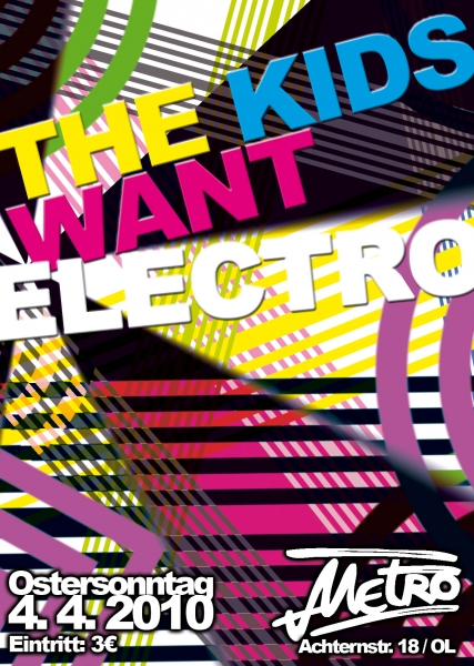 Nach dem spektakulären Auftakt im Dezember wollen die Kids noch mehr. Deshalb geht es am Ostersonntag den 4. 4. 2010 in die nächste Runde: ?THE KIDS WANT ELECTRO? Part II.