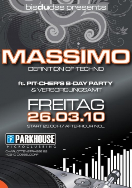 Die März-Ausgabe der BISDUDAS-PARTY verspricht ein ganz grosses Fest zu werden. Kein geringerer als der Initiator und Hoster der DEFINITION OF TECHNO, MASSIMO, wird uns mit seinem Sound beglücken.