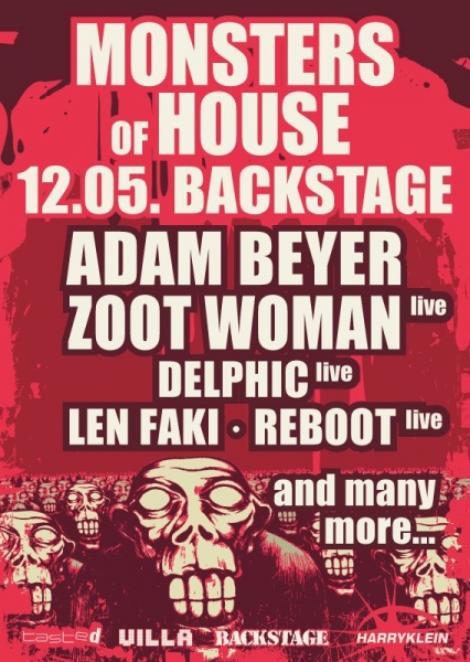Bobble Boombox is back! Das Münchner Kollektiv war auch beim letzten Monsters of House schon für die Kategorie ?New Rave? in all seinen Facetten verantwortlich. Mit ihrer mehr als erfolgreichen French-Isar Mischung liefern die Bobble Jungs alles von Mr. Oizo bis hin zu Daft Punk. Für heute stehen Les Petits Pilous, aus der BoysNoize Fraktion, auf dem Plan. Die beiden Jungs aus, Bastia / Nice nehmen das mit dem Krach Deluxe beim Wort. Da quietscht es. Sirenen läuten den Ausnahmezustand ein und an der Tür klingelt das Synth bis zum Hyperventilieren. Für den VIP Floor haben wir das Monaco Calcio Dj Team aka Der Brane & Chord abgestellt. Außerdem sind mit dabei, Delphic, Bodi Bill, Baby Monster, Len Faki, Paul Ritch, Dario Zenker, Djedjotronic, Edu K, Boris Werner, Julietta, Sascha Sibler und various VJ Artists.