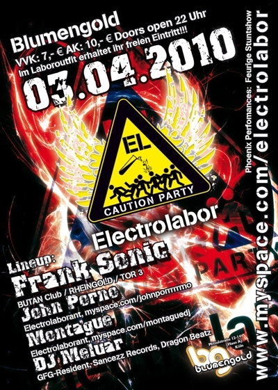 Am 3.04.2010 öffnet das Blumengold-Labor wieder seine heiligen Pforten zum Experimentierhimmel um von uns Electrolaboranten ordentlich aufgemischt zu werden.
