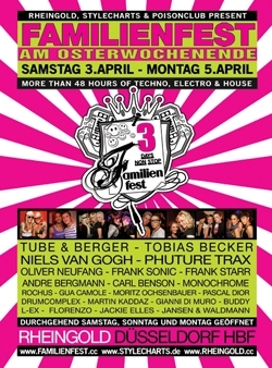 Das Familienfest an Ostern ist seit Jahren ein historischer Bestandteil im Rheingold. Auch in diesem Jahr heissen wir Euch ab Ostersamstag willkommen, um mit Euch über die Osterfeiertage zu tanzen. Selbstverständlich haben wir wieder für ein exclusives, hochkarätiges Line-Up gesorgt: Tube & Berger, Tobias Becker, Oliver Neufang, Phuture Traxx und viele mehr freuen sich auf ihr DJ-Set zwischen unseren beiden goldenen Löwen. Natürlich dürfen auch unsere engsten Familienmitglieder nicht fehlen und so freuen wir uns ganz besonders auf unsere Resident-DJs Frank Sonic, Frank Starr oder Andre Bergmann. Werdet ein Teil der Familie und freut Euch auf 3-Tage langes Familienfest im Rheingold.