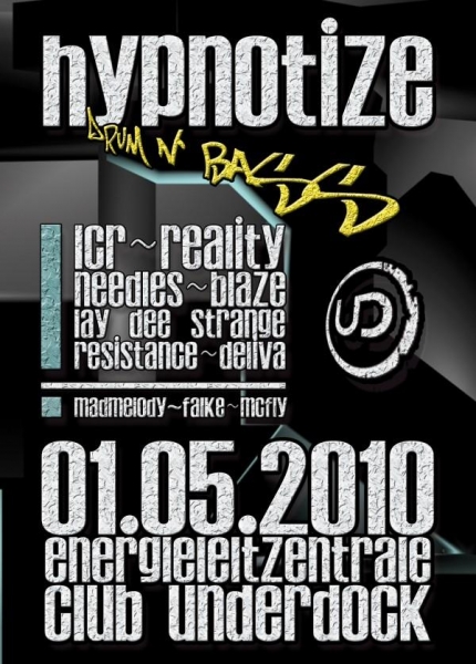 Es wird wieder ordentlich DRUM&BASS - BREAKBEAT - OLDSKOOL - NEWSKOOL und JUMP UP gespielt. Die DJ´s LCR, Reality, Needles und Resistance sind natürlich wieder mit am Start. Zudem konnten wir dieses Mal auch Djane Lay Dee Srange, DJ Blaze und DJ Deliva verpflichten uns ordentlich Bässe auf die Ohren zu ballern. Unterstützt werden die Dj´s von den MC´s MadMelody, Falk-E und McFly. Als SPECIAL starten wir dieses Mal mit einem Newcomer-Contest für alle DRUM&BASS DJ´s und MC´s. 3 DJ´s und 6 MC´s werden an diesem Abend gegen einander antreten. Wenn DU meinst, dass DU es drauf hast - Platten zu schieben oder MC Lyrics zu texten - dann bewirb DICH jetzt zum Contest. Für die Gewinner gehören dann die nächste Bassklatsche und Hypnotize zu Ihren NEXT Events!