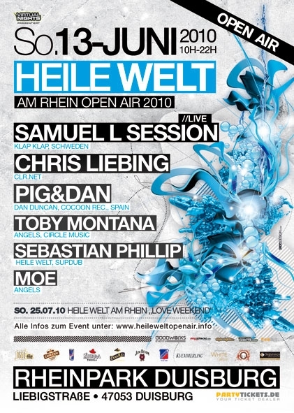 Nach der HEILE WELT Auftaktveranstaltung ? CIRQUE ÈLECTRONIQUE - geht es am Sonntag, den 13.06.2010 im Duisburger Rheinpark mit der 2ten HEILE WELT 2010 weiter.