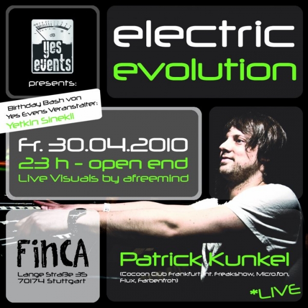Am 30.04.2010 geht es mal wieder rund her in einer der angesagtesten Clubs Stuttgarts. An diesem Abend haben wir uns für euch was ganz besonderes überlegt. Yes Events präsentiert euch ELECTRIC EVOLUTION. Ab geht´s in die nächste runde.