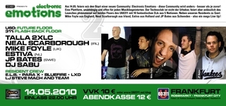 Mit ?Electronic Emotions? steht eine völlig neue Community in den Startlöchern, die es sich zum Ziel gesetzt hat, eine Plattform für alle Freunde der melodischen und progressiven elektronischen Klänge zu werden. Im Technoclub wird dieser Launch mit einem einzigartigen Lineup auf zwei Floors gefeiert, zu dem Talla 2XLC ein Heer hochkarätige Gast-DJs aus dem Ausland extra einfliegen lässt.