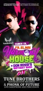 HARMONY HOUSE ist wieder da und sorgt in neuer Location für kräftig Wirbel in der Partyszene...jetzt sogar auf 2 Areas. Als neuer Standort hat der Veranstalter THE GOODLIFE ASSOCIATION das Cubes in der Oldenburger Innenstadt ausgesucht. Aber nicht nur aufgrund des Umzugs ins Cubes ist diese HARMONY HOUSE eine besondere Party. An diesem Abend feiert nämlich DON ROSSI, der Resident-DJ der erfolgreichen Eventreihe seinen 30. Geburtstag nach. Da ist es nicht wirklich verwunderlich, dass sich hochkarätiges Line Up aus Freunden und guten Kollegen die Ehre gibt um mit dem sympathischen Oldenburger DJ ordentlich Gas zu geben.
