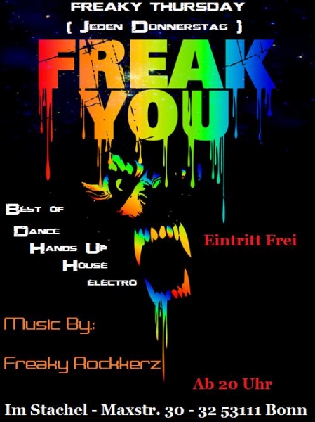 endlich ist es soweit und wir (Olli Hawk und Ich) haben den "Freaky Thursday" im Stachel geschaffenAb jetzt gibts dort jeden Donnerstag geile Beats aus dem Besten von House, Electro, Dance and Hands Up.....wir freuen uns auf euch :)