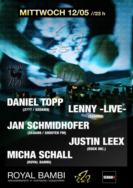 Denn diesmal sind Jan Schmidhofer und Lenny, die Macher der legendären Sedan9 Partys, zu Gast im Dortmunder Royal Bambi. Wer schonmal eine der Sedan9 Partys besucht hat, weiss was ihn an diesem Abend erwartet. Musikalische Klangkunst auf höchstem Niveau, ausgelassene Stimmung und familiäre Harmonie!
