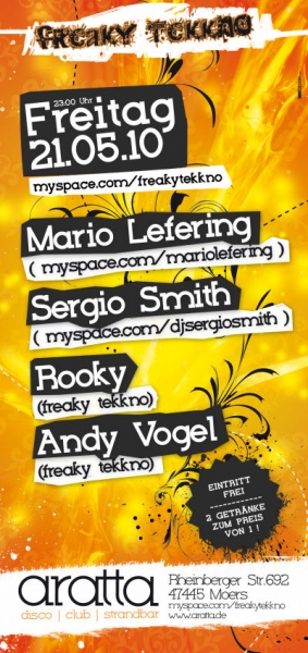 Mario Lefering, der Local Hero aus dem Ruhrpott, hat schon mehrfach unter Beweis gestellt, das er sich hinter großen Namen der Szene keineswegs verstecken muss! Er brennt schon darauf bei der Mai-Ausgabe der Freaky Tekkno seinen Klicker-Sound ein weiteres Mal auf Euch loszulassen. Auf geht?s !!!