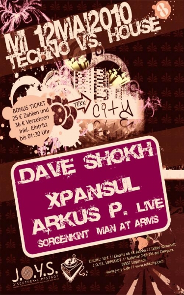 Nach der Erfolgreichen Techno vs. House im J.O.Y.S kommt das 2. Event