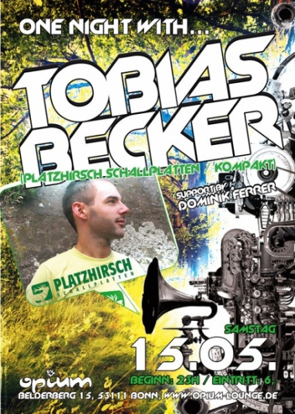 Jedes Wochenende bekommt Ihr von uns luxuriöses Hörmaterial im OPIUM! Freut euch auf erstklassige Programme mit grandiosen DJ-Sets am 15.05.10 von: TOBIAS BECKER