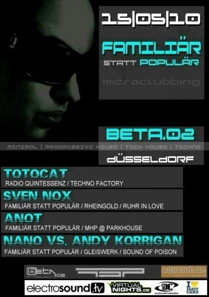 Seit Oktober zelebrieren wir monatlich die Familiär im Szene Club beta.02 in der Altstadt. Zu Beginn noch ein Geheimtipp,zieht das familiäre Miteinander die Besucher in ihren Bann und läßt exzessive Partys entstehen.