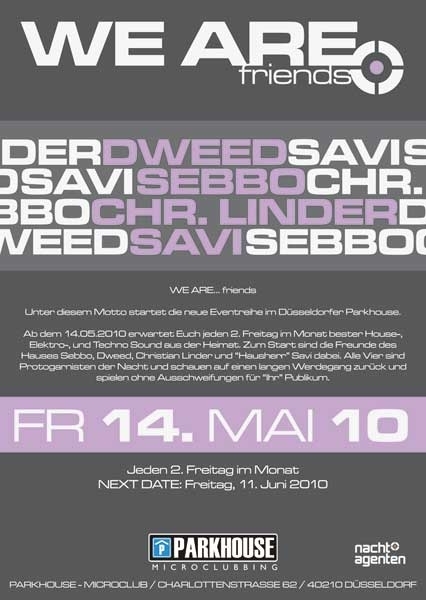 Zum Start sind die Freunde des Hauses Sebbo, Dweed, Christian Linder und ?Hausherr? Savi dabei. Alle Vier sind Protargonisten der Nacht, schauen auf einen langen Werdegang zurück und spielen ohne Ausschweifungen für ?Ihr? Publikum.