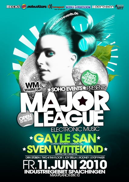 NEWSFLASH,NEWSFLASH...Der ?MAJOR LEAGUE? EVENT wird auf den FREITAG 11. JUNI verlegt... GAYLE SAN & SVEN WITTEKIND u.v.m.