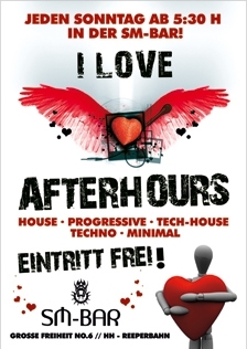 Nach dem Motto ?I love Afterhours? wird dort der Sound des Underground vertreten, ohne die Liebhaber des Clubsounds zu verschrecken. Kurz: Elektro, House/ Tech & Deephouse, Progressive, Minimal und Techno.