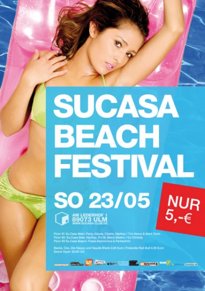 Der Pfingstsonntag wird heiss! Denn die heisseste Beachparty des Jahres steht auf dem Programm - und das Beste: am nächsten Tag kann aufgrund des Feiertages ausgeschlafen werden! Egal wie das Wetter wird: Es wird definitiv heiss im Su.Casa! Eine heisse Kombination aus Spitzen DJs gibt sich an diesem Abend die Klinke auf den 3 Floors in die Hand und verwöhnen Euch mit der besten Musik aus den Bereichen Party, Charts, House, HipHop, RnB und Electro! Diese Jungs sind seit Jahren in ganz Süddeutschland unterwegs und wissen, wie ein Floor so richtig auseinander genommen wird: Mark Tonic, Tim Vesco, Farbenfroh, Chrizzly und Fiesta Electronica werden an diesem Abend dafür sorgen, dass bis ins Morgengrauen so richtig gerockt wird! Zu einer Beachparty gehören natürlich auch günstige Getränke: Finlandia Red Bull kostet nur 4,50 Euro, Becks kostet nur 2,00 Euro, Oxx schlappe 2,00 Euro, Die Happy und Tequila Shots sind ebenfalls für unschlagbare 2,00 Euro zu haben! Riesen Verlosung! Los geht es schon um 22:00 Uhr! Der Eintritt für diese Beachpartyt kostet nur schlappe 5,00 Euro! Wer am Pfingstsonntag kein Beachfeeling hat, ist selber Schuld! Party on!