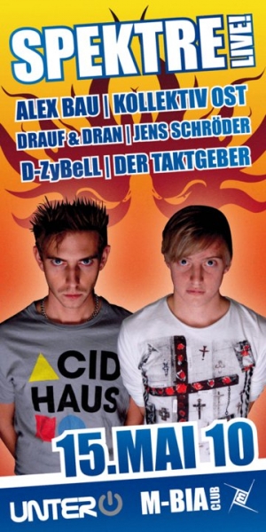 Am 15.Mai ab 23 Uhr startet im M-Bia Club am Alexanderplatz die neue Veranstaltungsreihe ?Unter0?. Die Veranstalter wollen nicht kleckern und holen Paul Maddox & Filthy Rich alias Spektre aus Manchaster in die Hauptstadt. Auch Alex Bau aus dem Hause Chris Liebing Rec. dürfte mit seinen Releases eher fürs Klotzen bekannt sein. Supportet von einigen regionalen Dj-Freunden dürfte das ein sehr grooviger Abend werden.