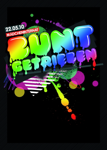 Heute bunte Socken an? - Wenn nicht, auch nicht schlimm, denn wir bieten Euch eine Party auf der es bunt zugehen wird ? nicht nur musikalisch. Wer das Mädcheninternat kennt, der weiß um die bunten Verzierungen welche das Gebäude schmücken. Aber auch drinnen läuft man unter anderem mal einer Ernie und Bert Tapete über den Weg. Neben sinnesfreudigen Visuals des Videokünstlers Kay Kastner wird Euch bei Buntgetrieben die Möglichkeit geboten Teil der Deko zu werden ? lasst euch überraschen;)