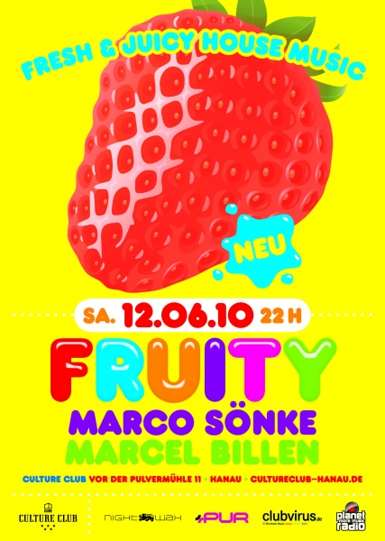 Zu den frischen House-Sounds wird es einige fruchtig-leckere Specials geben und FRUITY wird sich mit Sicherheit zu einer weiteren erfolgreichen und regelmäßigen Party in Hanaus-Top-Location entwickeln.