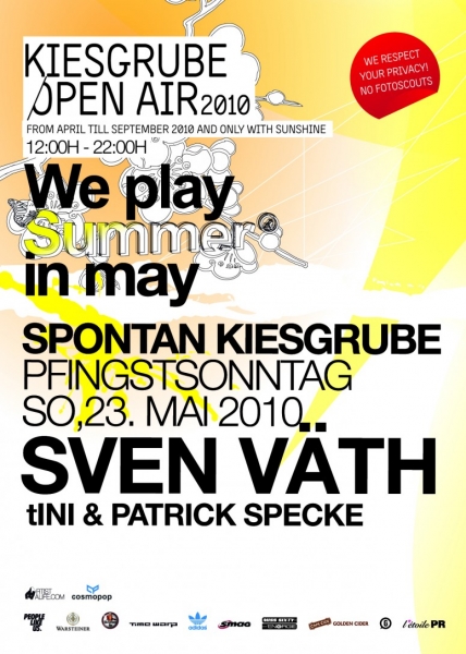 Am Pfingstsonntag, den 23. Mai 2010 ab 12 Uhr findet die Kiesgrube statt, und zwar mit niemand Geringerem als DJ-Legende Sven Väth!