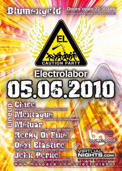 Also seid gespannt auf eine neue Wahnsinnsfahrt mit dem Electrolaborexpress, der euch wie immer in den den Partyhimmel befördert.