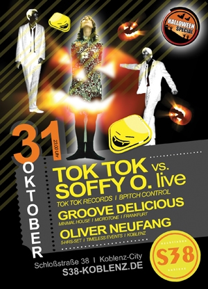Lasst die andern doch einen auf gruselig machen - Im S38 gibt?s Qualität anstatt Blutimitat und falschen Vampirzähnen: Tok Tok vs. Soffy O. sind live zu Gast und Groove Delicious schauen auch vorbei. Ein absolutes Highlight zu Halloween! Los geht?s um 23.00 Uhr!