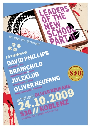 Mit David Phillips (Club Ohm/Ulm), Brainchild (BrainToolz.com/Bonn), Juleklub (Techno-Vibes/Bonn) und Oliver Neufang (Timeless ? Minimalsause ? Küche38/Koblenz) präsentiert die Timeless-Oktoberausgabe gleich vier Hochkaräter auf einen Schlag! Los geht?s am 24.10. wie gewohnt um 23.00h ? Das S38 ist bereit für eine lange Nacht!